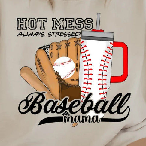 Hot Mess Always Stressed Baseball Mama
